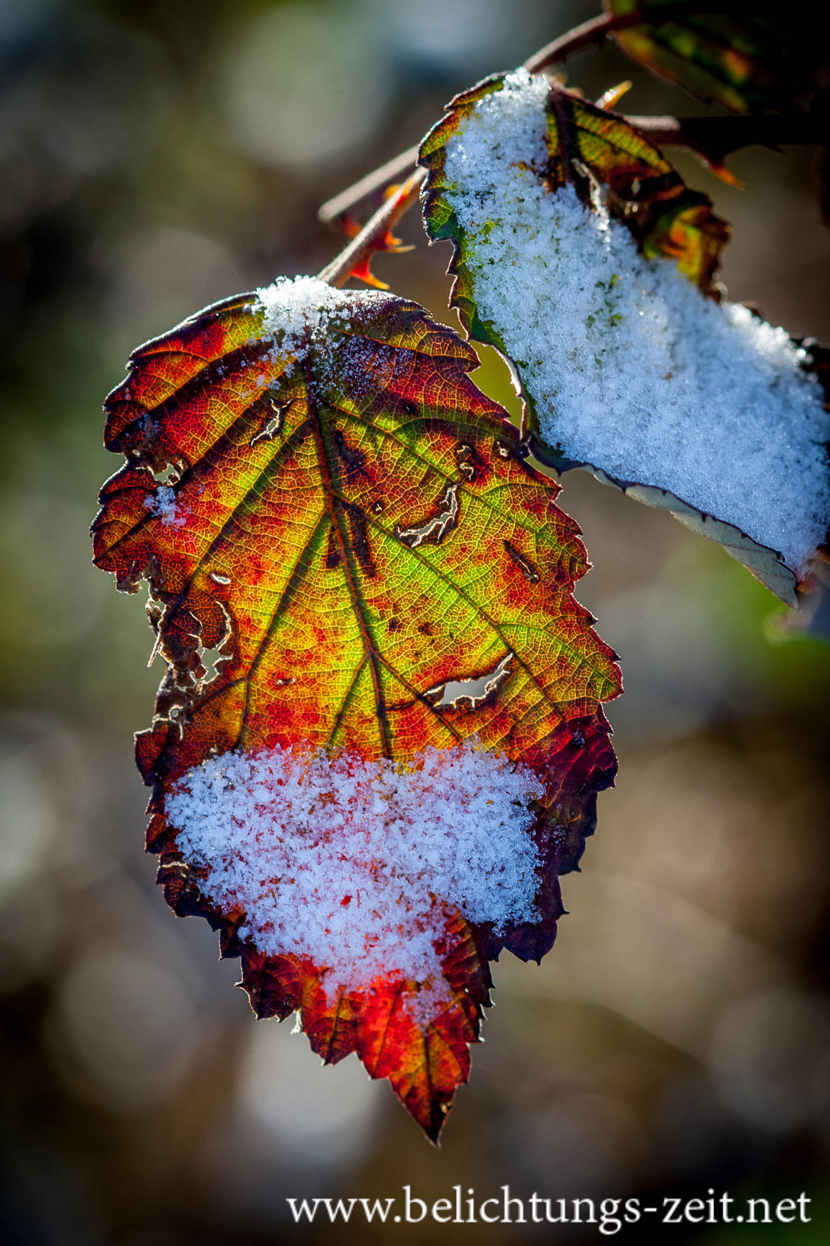 Blätter mit Eiskristallen
