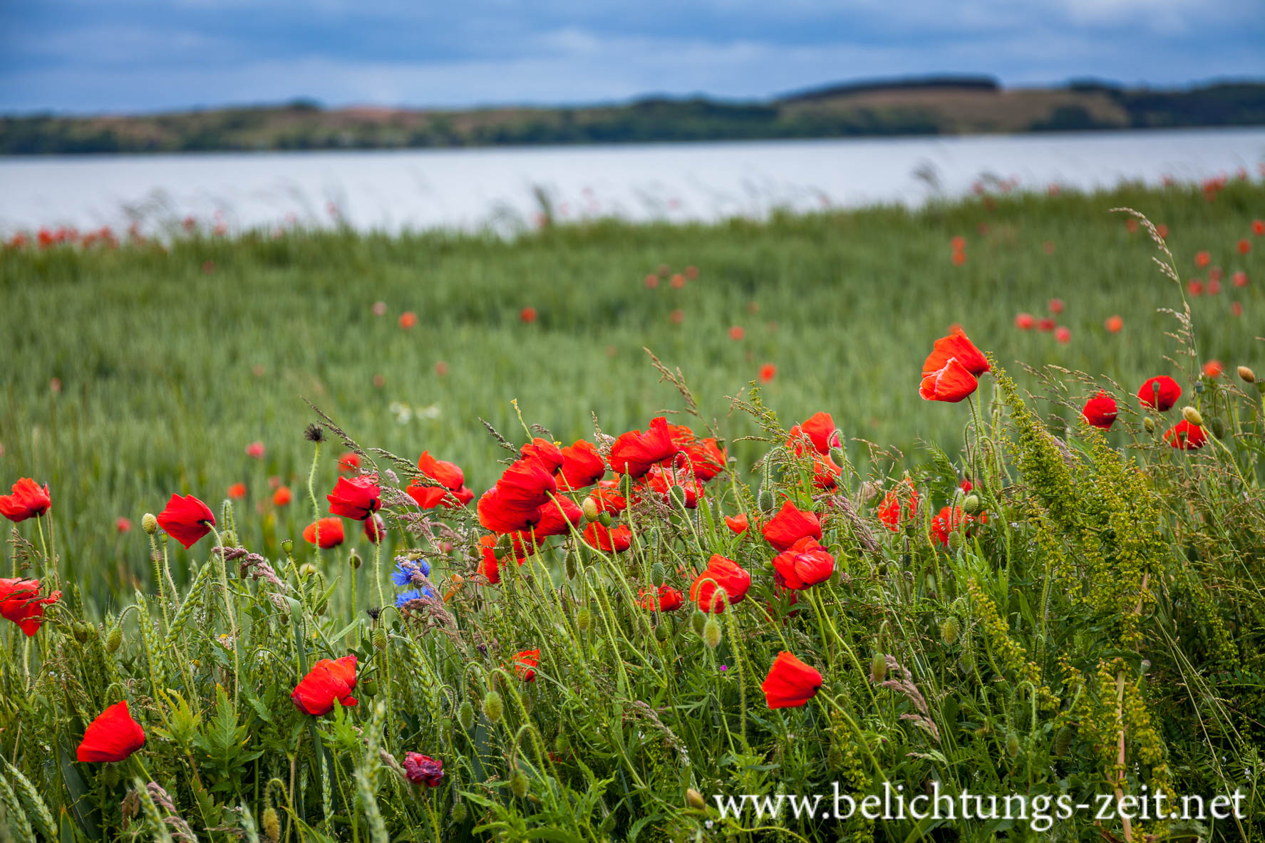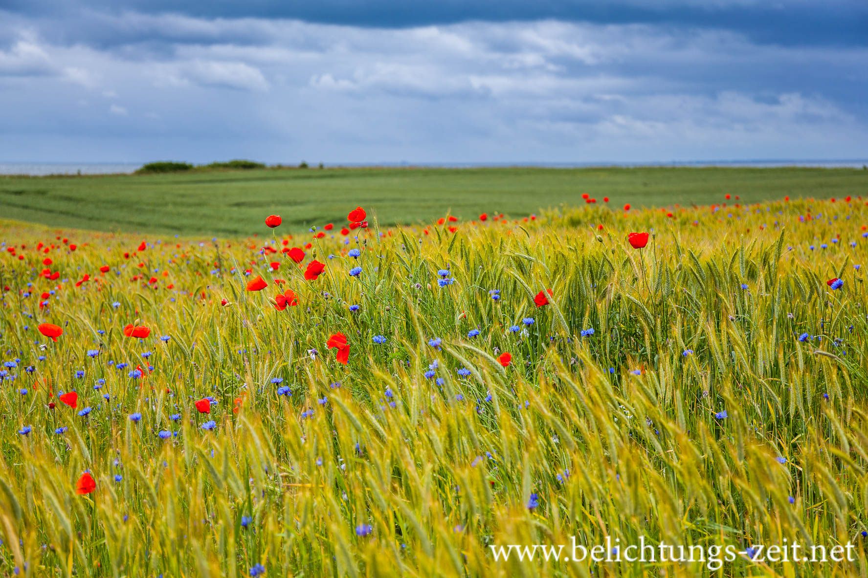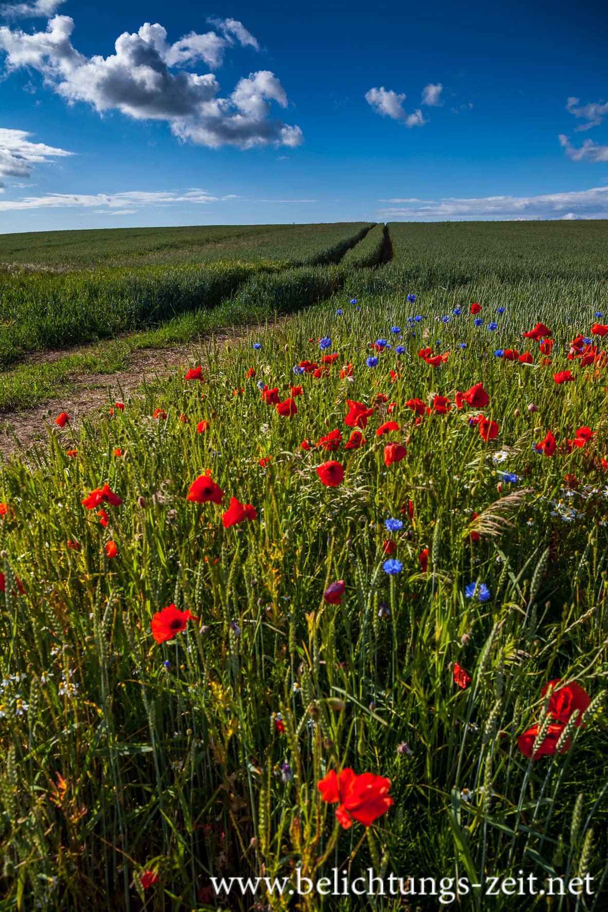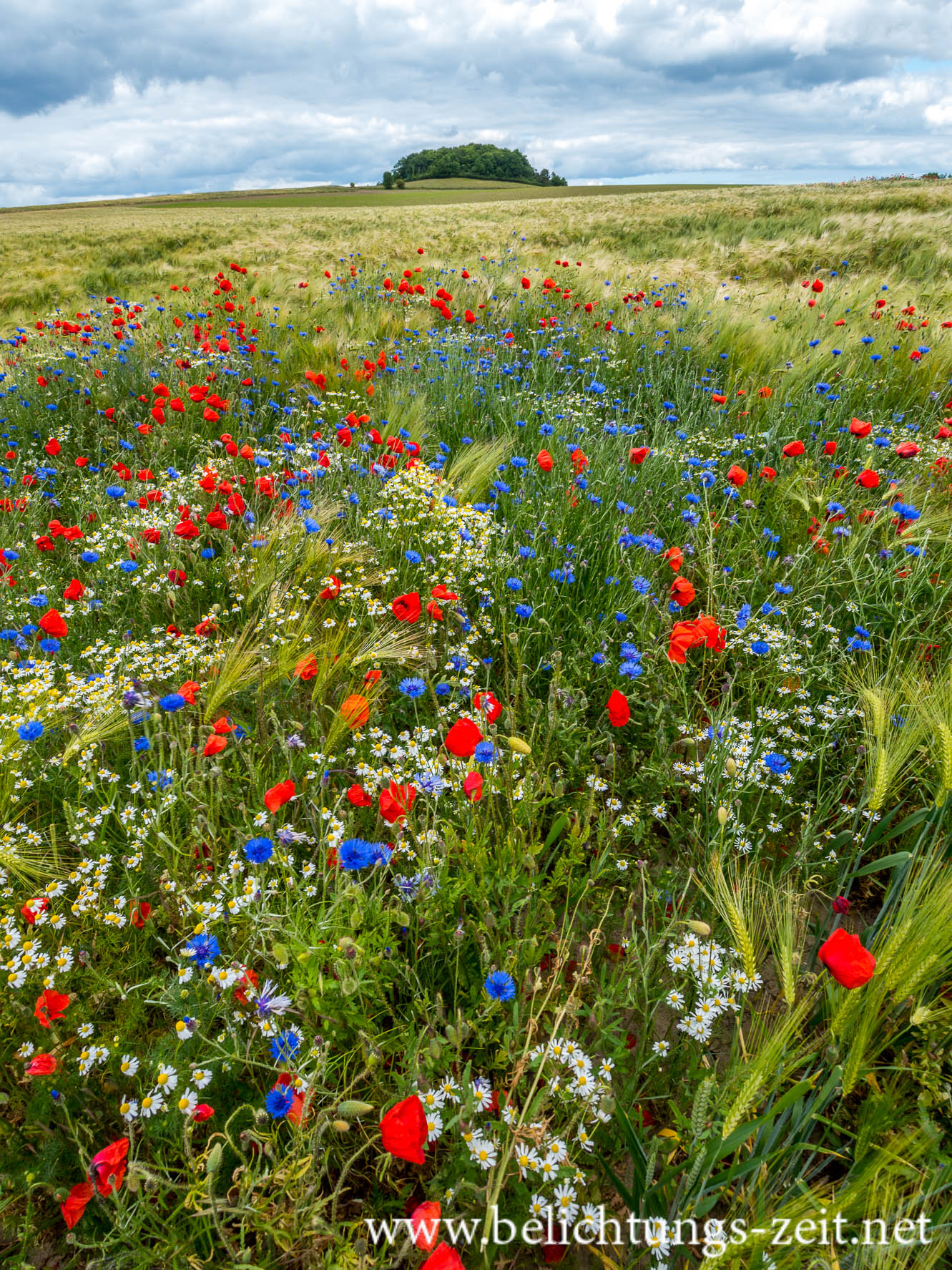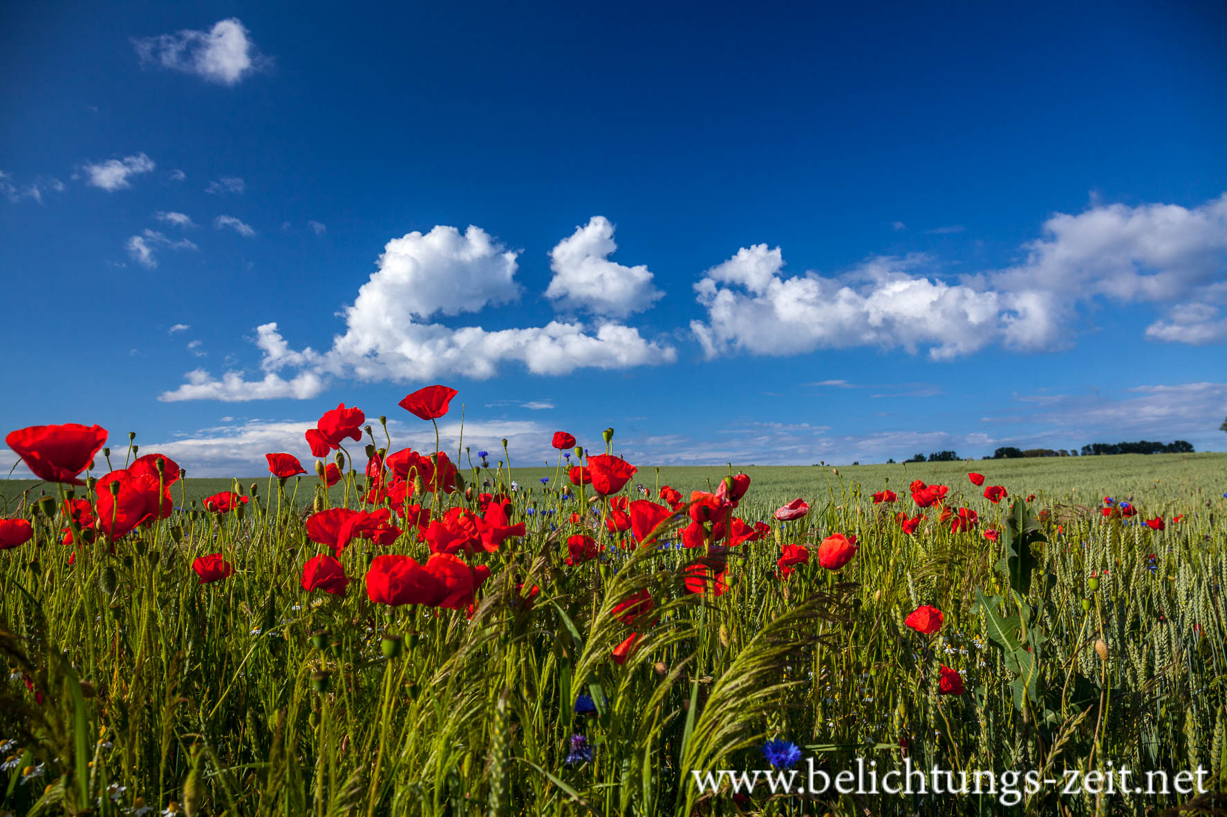 Feld mit Mohn und Kornblumen